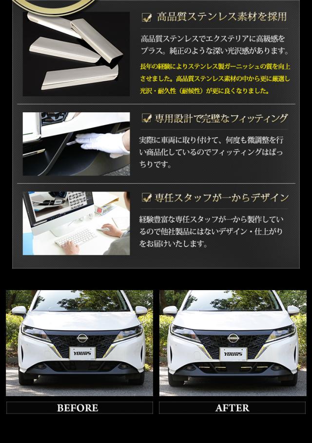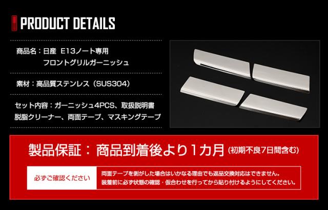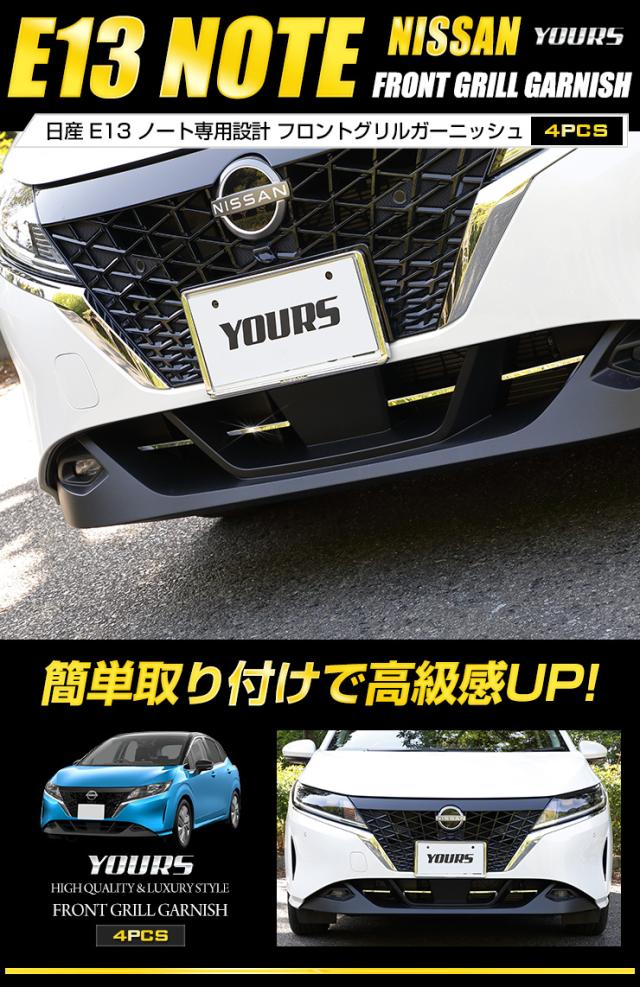 E13 ノート 専用 フロントグリルガーニッシュ 4PCS 高品質ステンレス NOTE メッキ パーツ 日産 ニッサン カスタム ドレスアップ グリル 鏡面