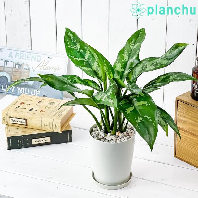 PLANCHU 観葉植物 アグラオネマ マリア 4号鉢 受け皿付き 育て方説明書付き Aglaonema ‘Maria’ 幸せを招くタイの宝石 アロイド