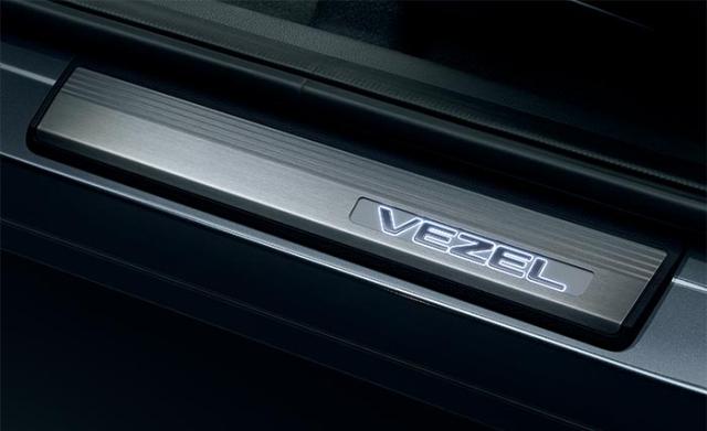 フロント部LEDイルミネーション(ドア開閉連動/VEZELロゴ)付/ステンレス製/フロント・リア用左右4枚セット