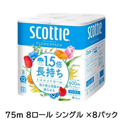 スコッティ フラワーパック1.5倍長持ち 75m 8ロール シングル ×8パック トイレットペーパー scottie 送料無料 00642