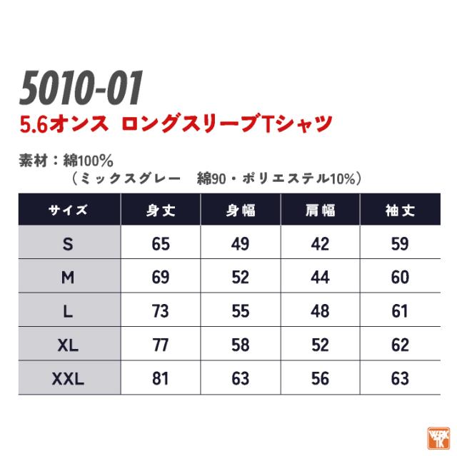 5010-01 一年中着まわせる、コスパ抜群のロンT!袖リブが無いので、すっきりシルエットで着たい方におススメ。