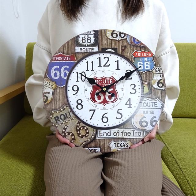 ルート66の看板をモチーフにした味のあるアンティーク感漂うお洒落な掛け時計です。