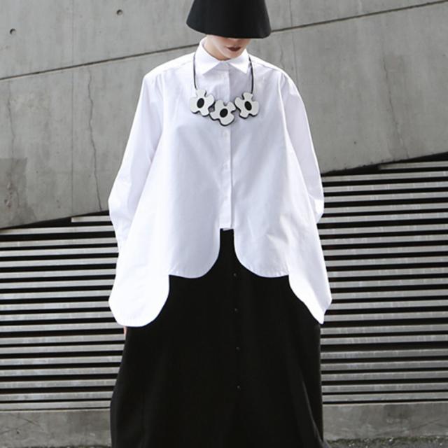 アシンメトリー シャツ トップス レディース 長袖 個性的 変形デザイン アシメ ブラウス モード系 ゴシック コットン 通勤 OL フォーマル 黒 ホワイト