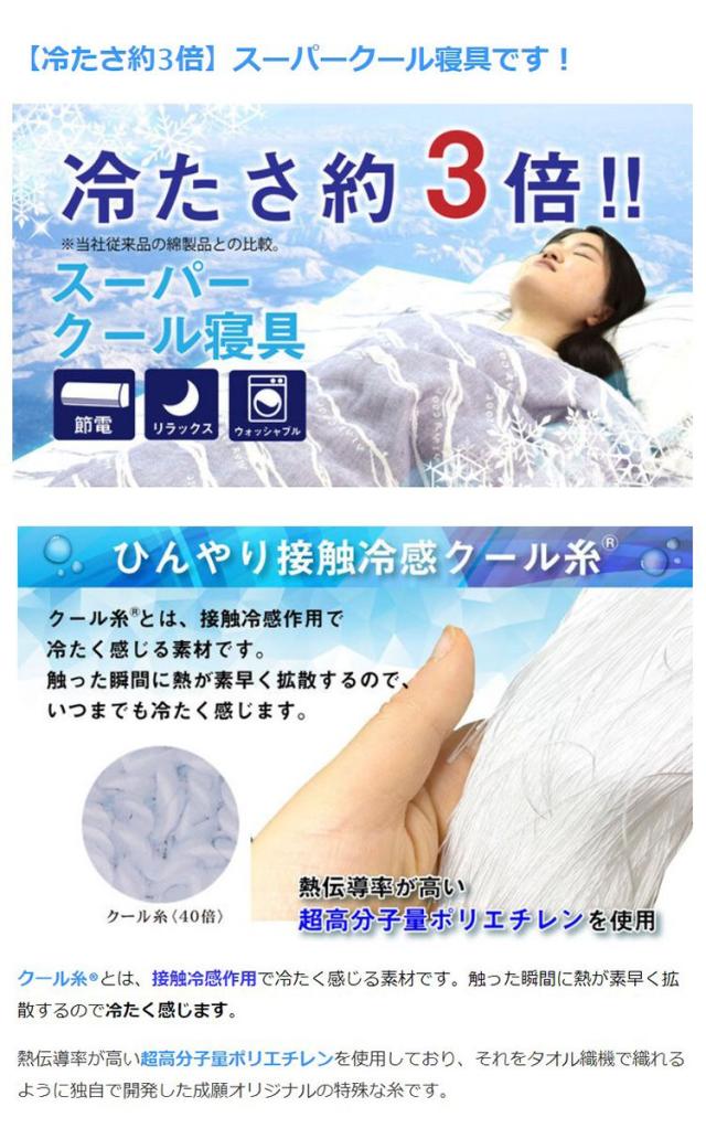 熱伝導率が高い超高分子量ポリエチレンを使用しており、それをタオル織機で織れるように独自で開発された老舗メーカー成願オリジナルの特殊な糸です。