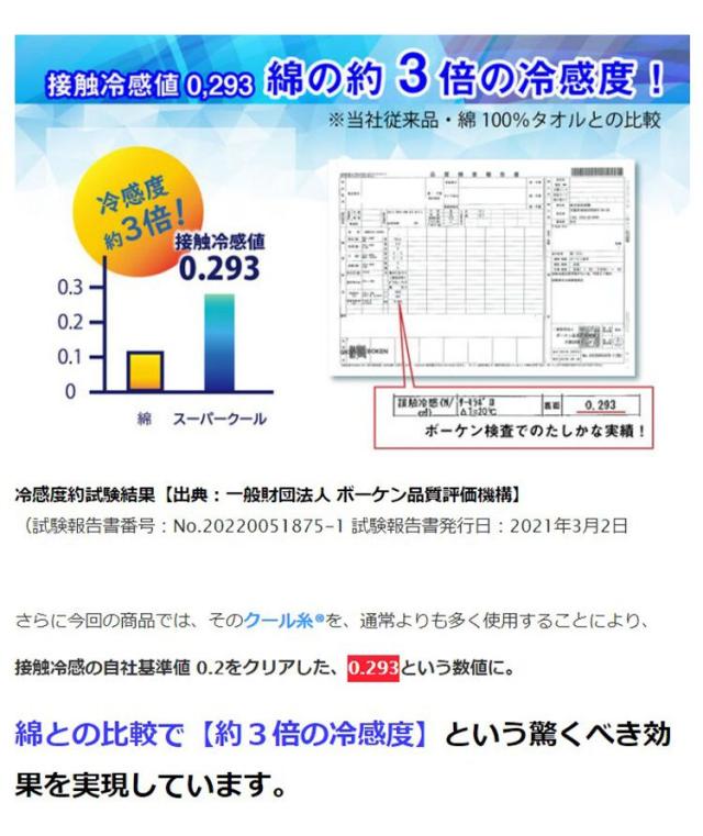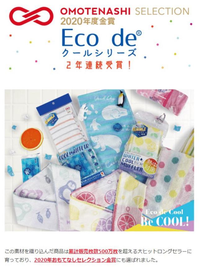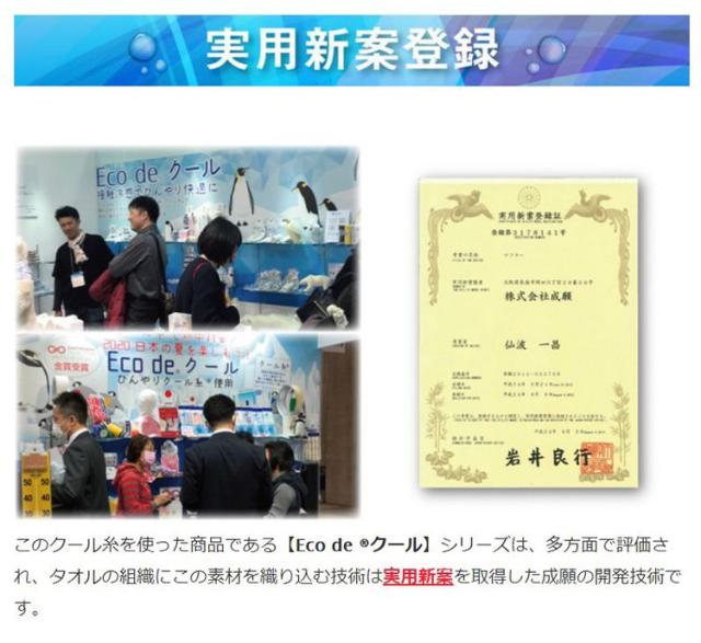 このクール糸を使った商品である【Eco de (R)クール】シリーズは、多方面で評価され、タオルの組織にこの素材を織り込む技術は 実用新案 を取得した成願の開発技術です。
