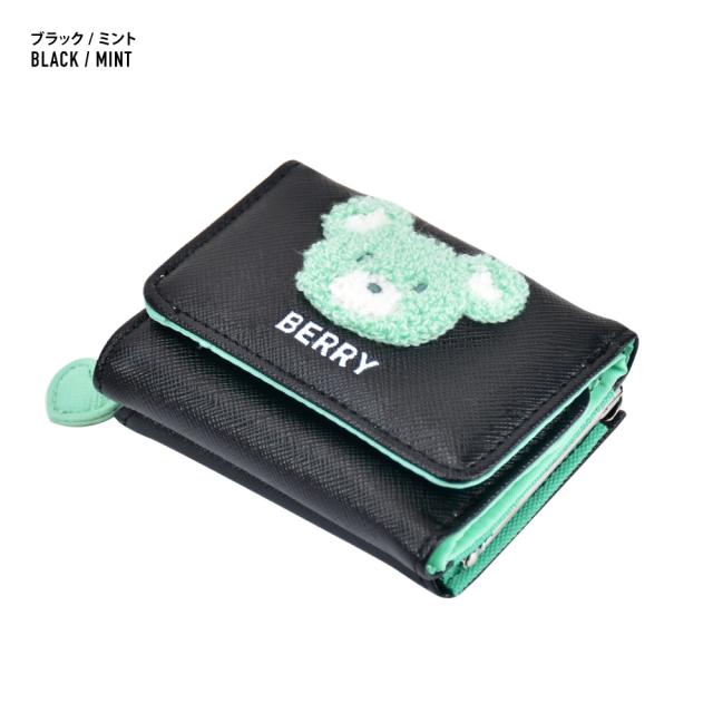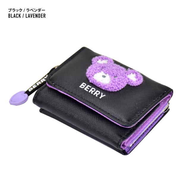 BERRY刺繍 合皮 三つ折り財布