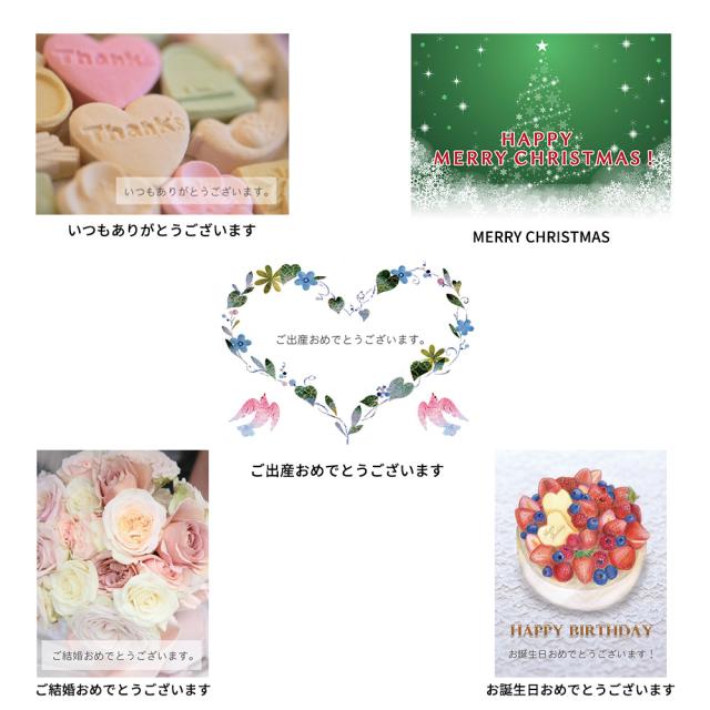※カードをご希望の場合には、カードの種類(いつもありがとうございます・ご結婚おめでとうございます・お誕生日おめでとうございます・ご出産おめでとうございます・MERRY CHRISTMAS)をお選びください。