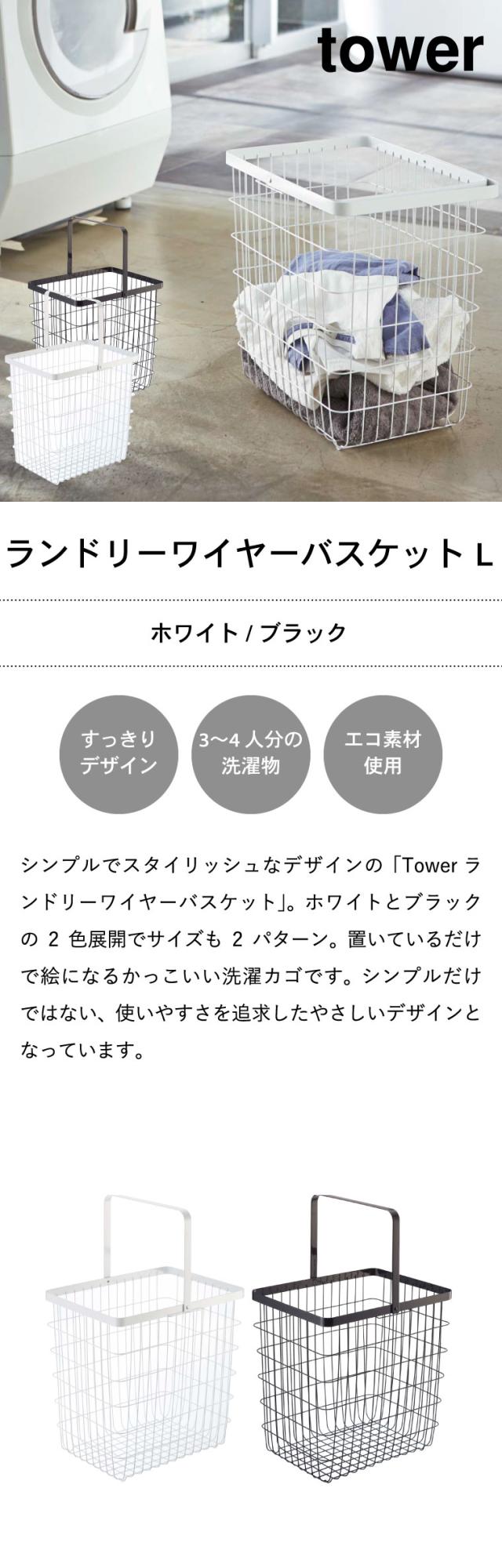 tower 山崎実業 送料無料 タワー ランドリーワイヤーバスケット L ホワイト ブラック 3162 3163 洗濯かご ワイヤーバスケット 脱衣かご 洗濯物入れ シンプル おしゃれ 誕生日プレゼント
