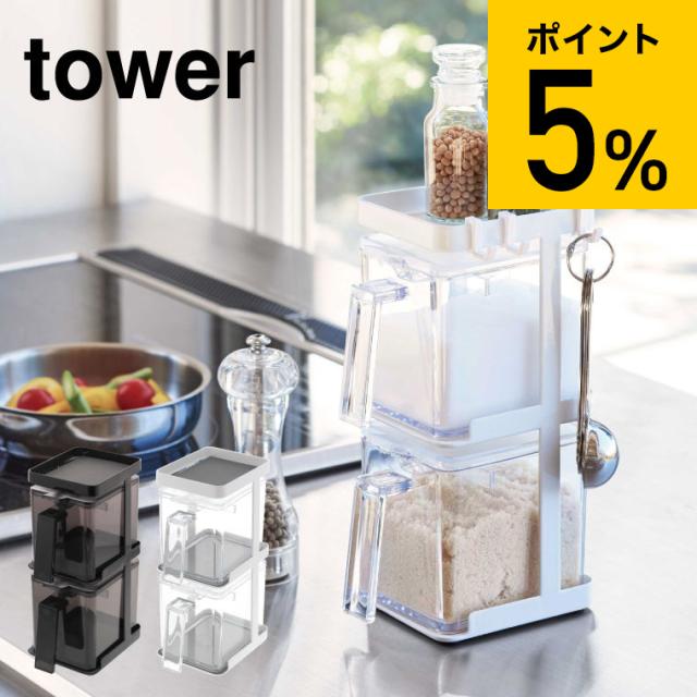 tower 山崎実業 送料無料 調味料ストッカー2個&ラック3段セット スリム タワー ホワイト ブラック 調味料入れ 縦置き 砂糖入れ 塩入れ ケース 調味料収納 スパイスラック フック付き シンプル おしゃれ 誕生日プレゼント