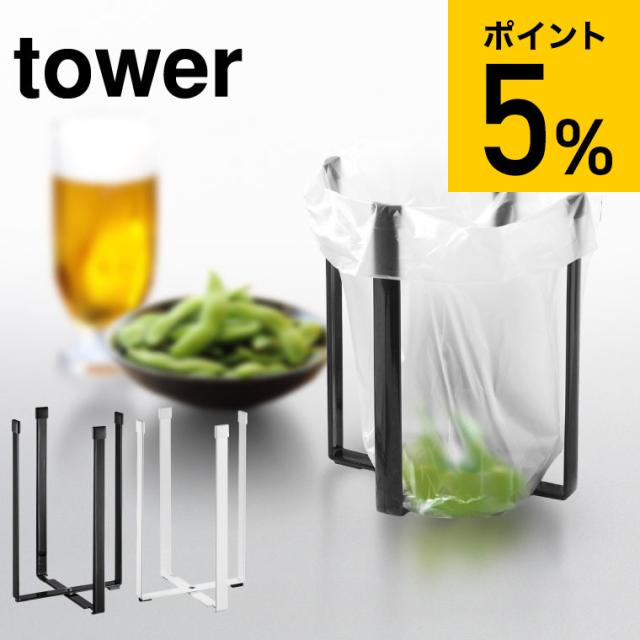 tower 山崎実業 ギフト ポリ袋エコホルダー タワー L ホワイト ブラック ゴミ箱 ごみ箱ホルダー コップ 水筒 ペットボトル 水切りスタンド シンプル おしゃれ 誕生日プレゼント