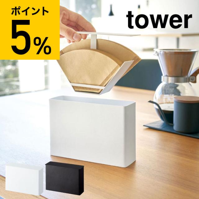 tower 山崎実業 コーヒーペーパーフィルターケース タワー ホワイト ブラック コーヒーフィルターケース 蓋付き コーヒーペーパーホルダー 紙フィルター 収納 シンプル おしゃれ 誕生日プレゼント
