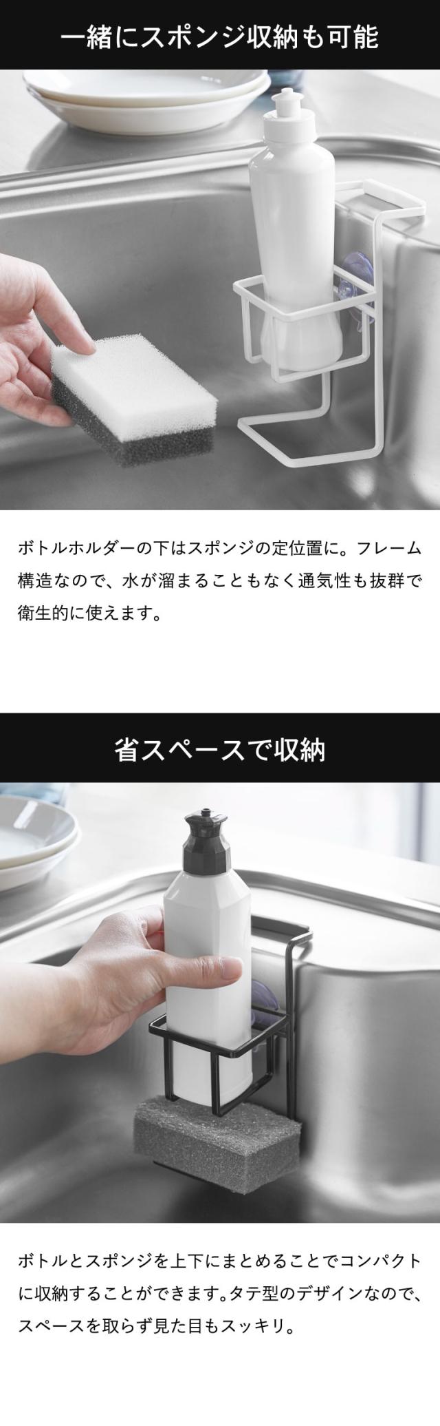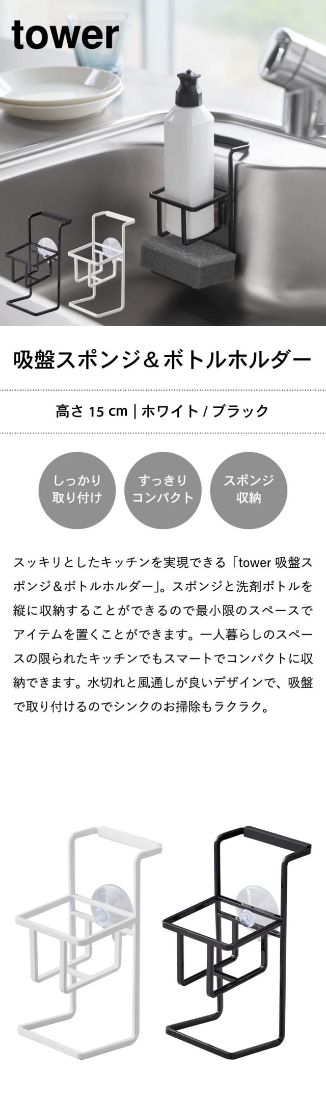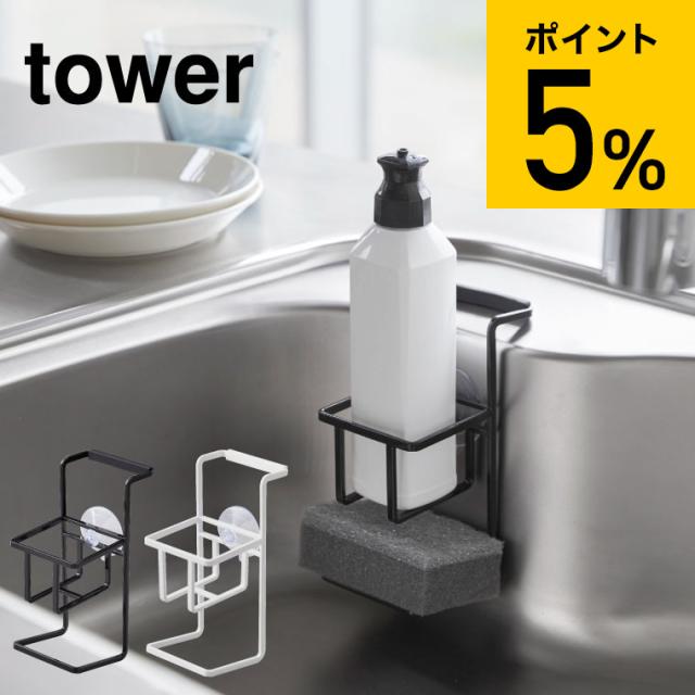 tower 山崎実業 吸盤 スポンジ&ボトルホルダー タワー ホワイト ブラック スポンジ置き 洗剤置き スポンジラック シンク周り キッチン収納 シンプル おしゃれ 誕生日プレゼント