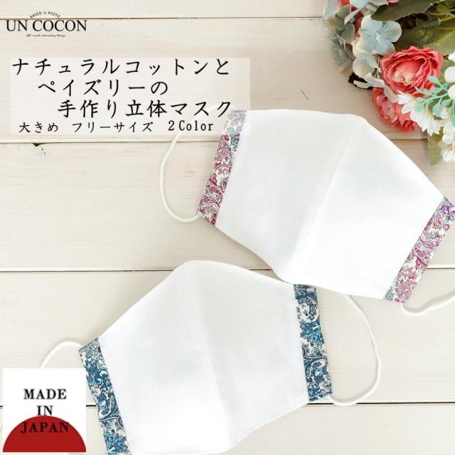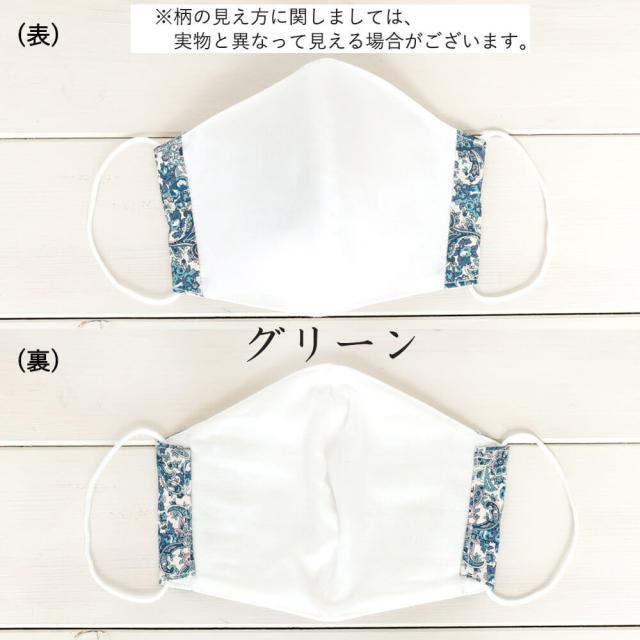 布マスク 大人マスク 大きめ立体 立体 ペーズリー グリーン ピンク ギフト 記念日 綿 日本製 送料無料 メール便2ポイント