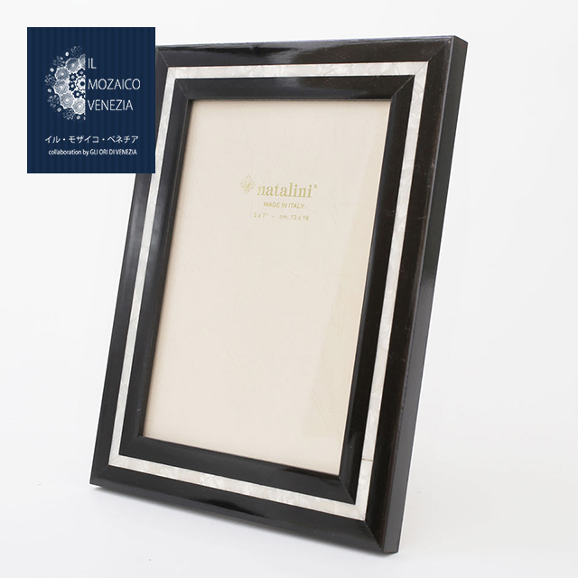 イタリア製 ナタリーニ/NATALINI ハンドメイド 写真/PHOTO/写真立て/フォトフレーム/写真入れ 天然素材/木製 ベルガモ 白蝶貝 ネロ インテリア