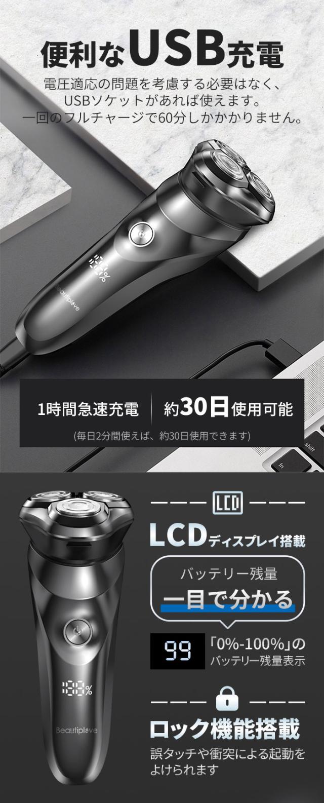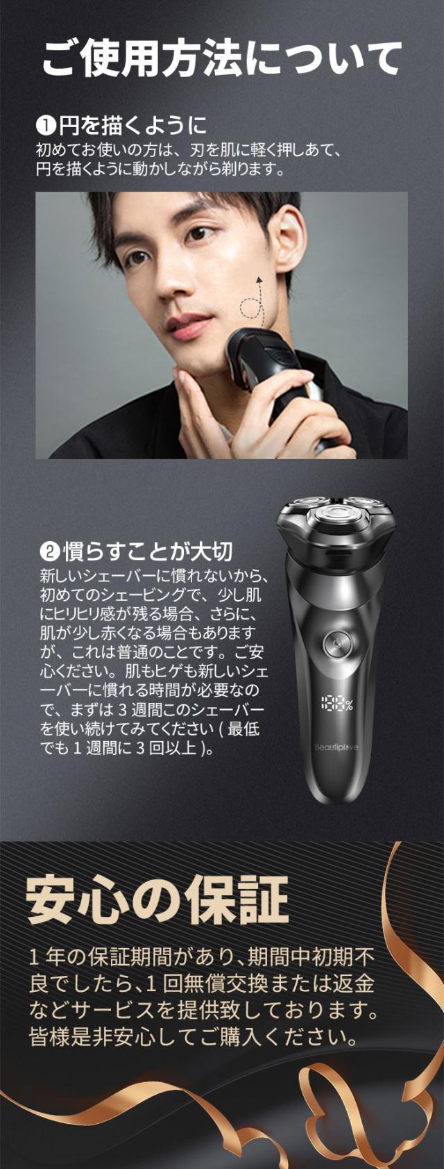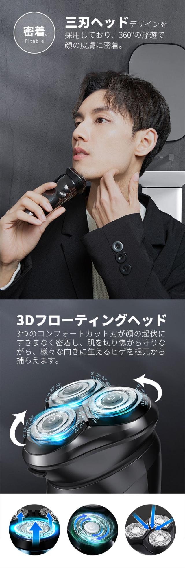 シェーバー 髭剃り 電気シェーバー メンズシェーバー 深剃り 60分間 電気髭剃り ひげそり 防水 丸洗い可 回転式 自動研磨 3枚刃 USB充電 1年保証
