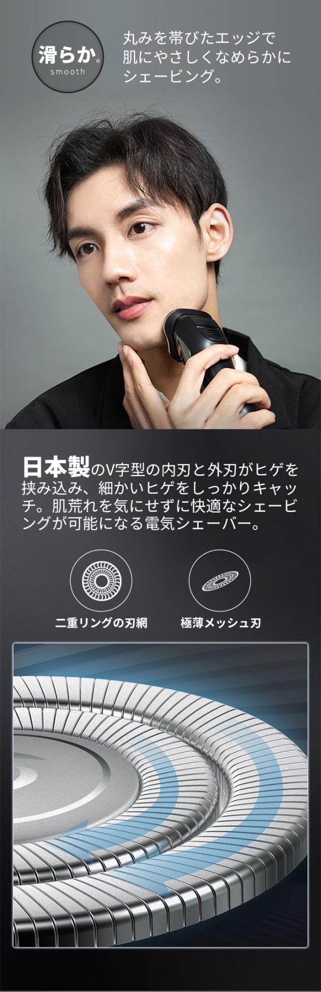 様々な方向に生えるヒゲを逃さず、根本から効率よく捉えて、剃りづらい無精ヒゲもしっかり整える電動シェーバーであります。肌にやさしい深剃りを効率的に実現し、肌を傷つけることなくツルツルに剃れるのでおすすめします。