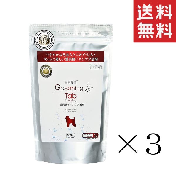 バイオエルティ groomingtab グルーミングタブ 重炭酸イオンケア浴剤 (ホットアルバム炭酸泉タブレット) 犬猫用 100錠×3袋