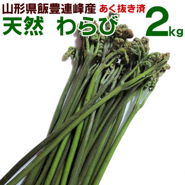 予約販売 5月上旬〜6月中旬頃順次発送 わらび あくぬき済 2kg(1kg×2束) 天然 山形県産 飯豊連峰 朝採り 山菜 産地直送 送料無料 冷蔵便