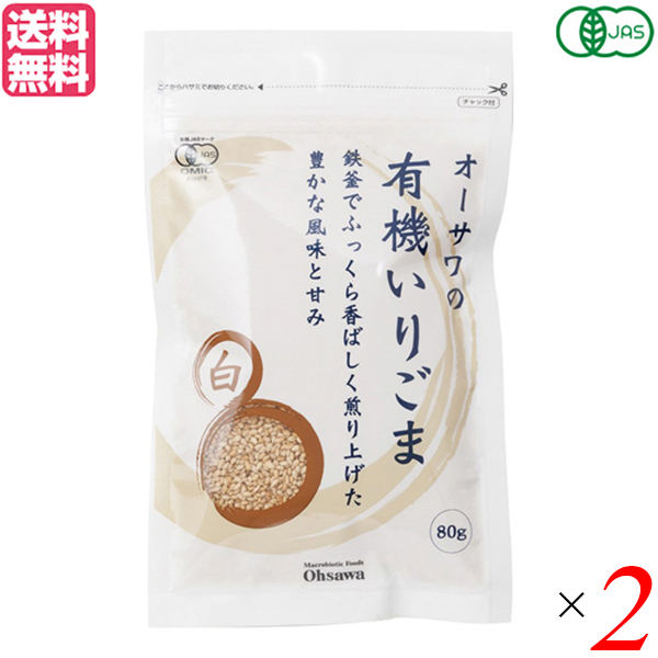 【3/16(月)9:59迄!ポイント5%+日曜5%】いりごま 煎りごま ごま オーサワの有機いりごま(白)80g 2袋セット 送料無料