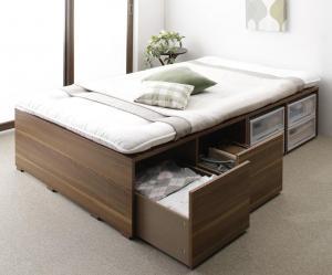薄型プレミアムポケットコイルマットレス付 引出し4個 ロータイプ セミダブル