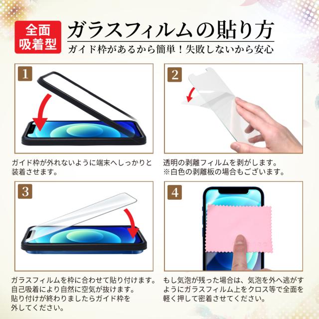 フィルム(全面吸着タイプ)×2枚 / ガイド枠×1個 / 貼る前に端末掃除クリーナー×2セット