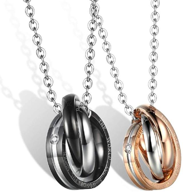 ペアネックレス 3連リング アレルギーフリー 刻印 ステンレス ペア 幸せのペアネックレス ステンレスネックレス ネックレス 人気ペアネックレス