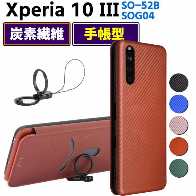 Xperia 10 III SO-52B SOG04 手帳型 薄型 カーボンファイバー 炭素繊維カバー TPU 保護バンパー 財布型 マグネット式 カード収納 落下防止 ホルダ 横開き エクスペリア テン マーク3
