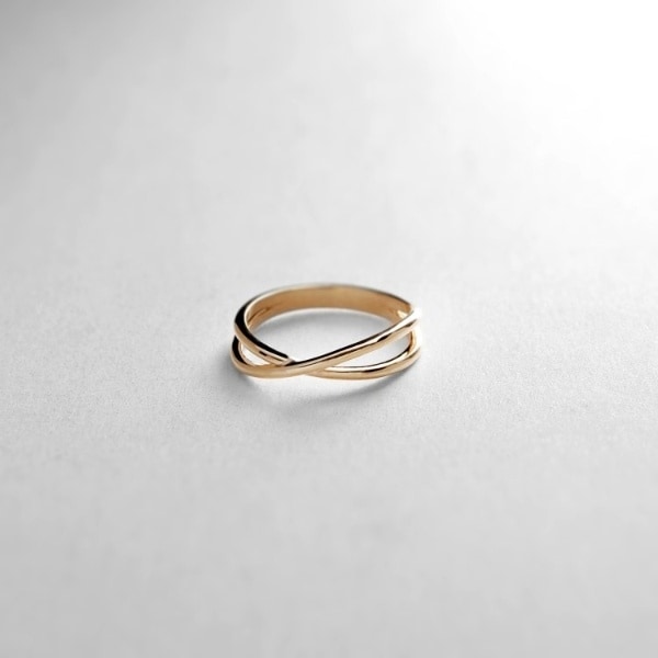 華奢なシルエットながら着こなしのポイントになるコーディネートリング。