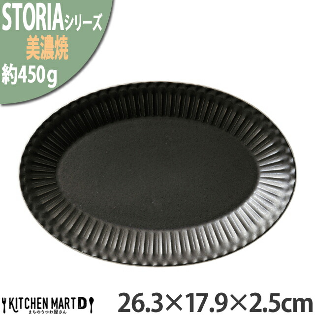 ストーリア リストーン 26.3×17.9×2.5cm プラター 楕円皿 プレート 美濃焼 クリスタルブラック 黒 約450g 日本製 ラウンド 丸 丸い 皿 食器 パスタ皿 カレー皿 大皿 大きい しのぎ レリーフ おしゃれ かわいい かっこいい 陶器 光洋陶器 業務用 食洗器対応 ラッピング不可