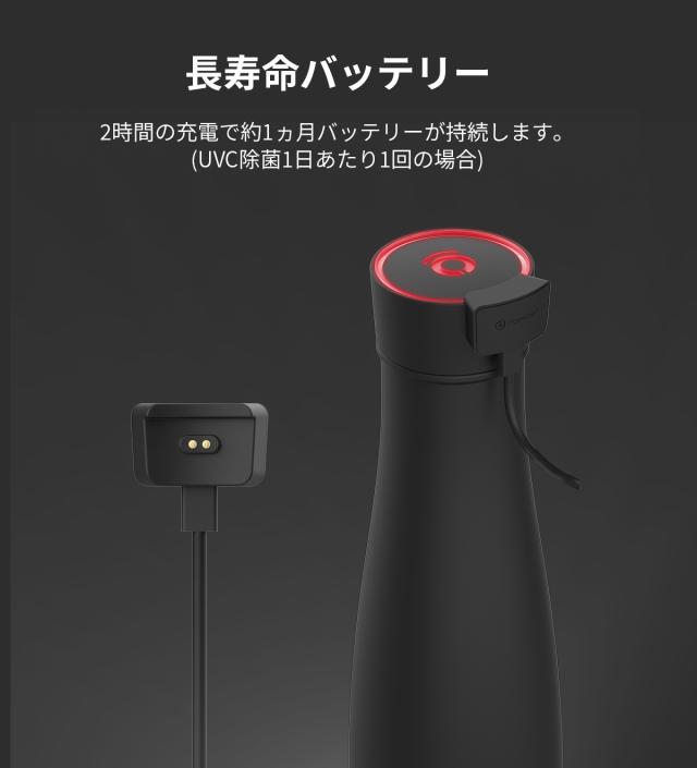 ・二時間の充電で約一か月バッテリーが持続します(UVC除菌1日あたり1回使用の場合)