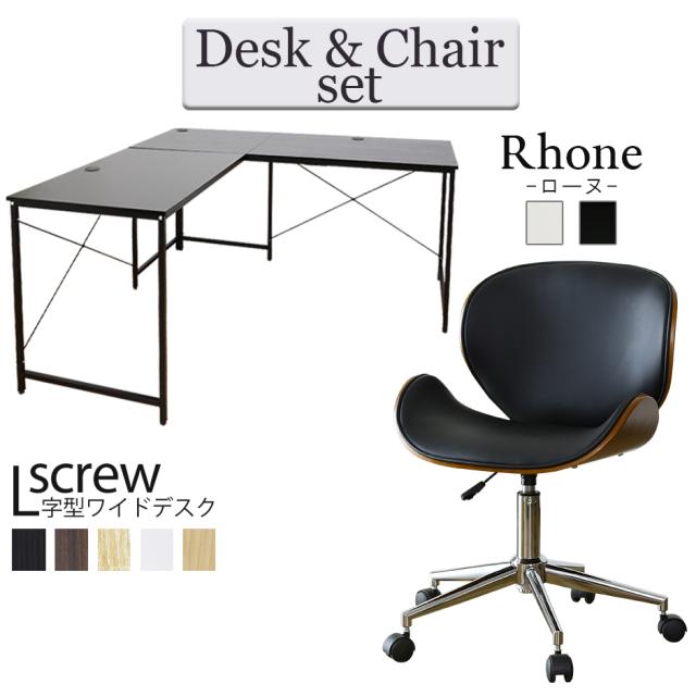 パソコンデスク オフィスチェア セット デスク 在宅 テレワーク 木製 L字 PCデスク コーナー ゲーミングデスク 北欧 キャスター付き スクリュー ローヌ tm