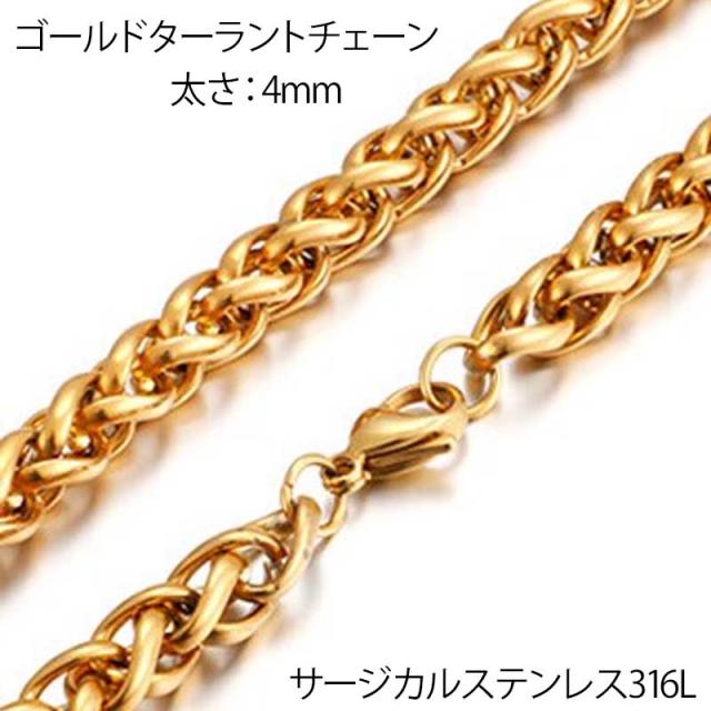[サージカルステンレス316L製 ネックレスチェーン] ゴールドターラントチェーン (太さ:4mm) 細い 細め ステンレスチェーン チョーカー 首飾り 編み込み メンズ レディース 人気 プレゼント ギフト 男の人 女の人 4ミリ 4.0mm おしゃれ 金色 鎖 クサリ カッコイイ