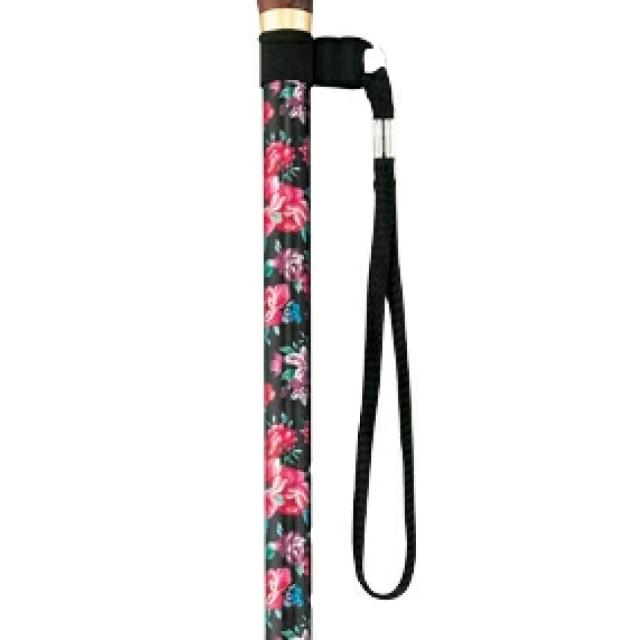 手首に通せば両手が自由になり、置き場所にも困りません。杖を置き忘れたり、倒したりすることも少なくなります。