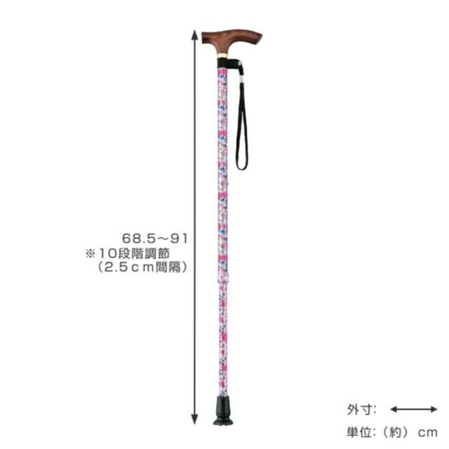 | サイズ | 長さ:約68.5〜91cm 伸縮10段階(2.5cm間隔) 杖先ゴム径:16mm |