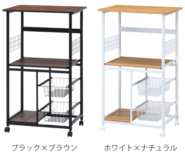 レンジ台 幅60cm スチールフレーム スライド棚 スライドカゴ付 ( 家電ラック キッチン収納 収納 ラック 収納ラック 収納棚 棚 キャスター キッチン 電子レンジ 炊飯器 台所収納 家電収納 ブラウン 白 おしゃれ )