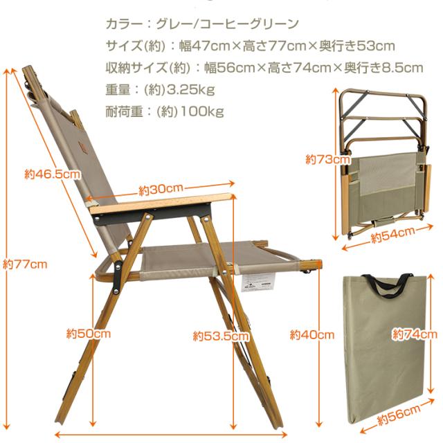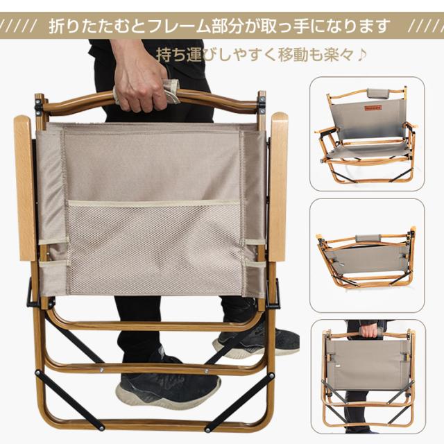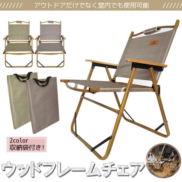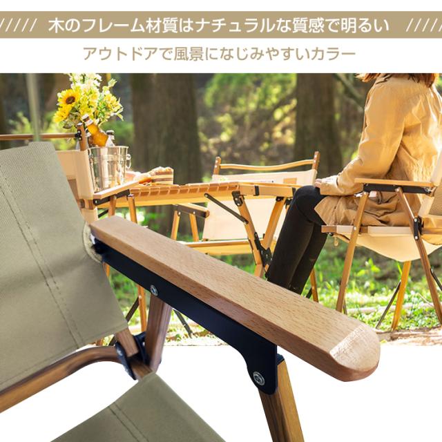 ウッドフレーム チェア アウトドアチェア ウッドチェア キャンプチェア キャンプ イス 椅子 チェア 肘置き 収納袋付き フォールディング ポータブル 折りたたみ 焚き火 ロースタイル 木目 ウッド