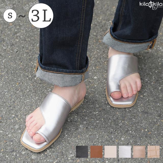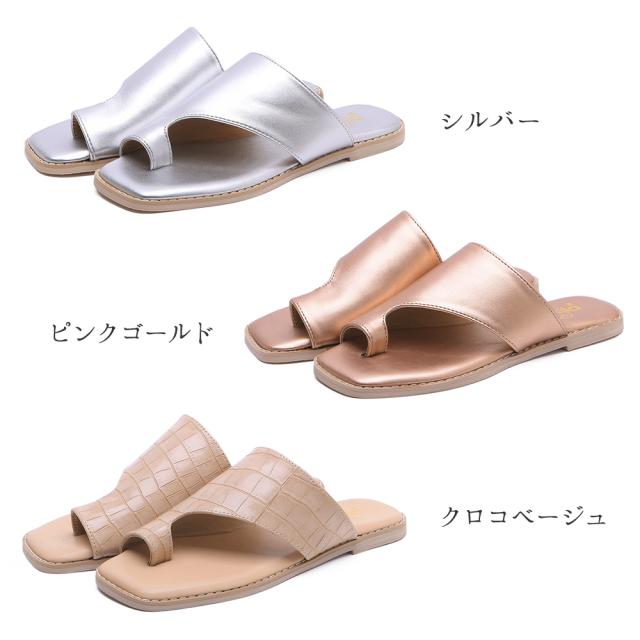 サンダル レディース ぺたんこ トングサンダル 親指リング ぺたんこ ローヒール スクエアトゥ 歩きやすい 痛くない 履きやすい 黒 ブラック ベージュ ブラウン アイボリー シルバー 春 夏 春新作