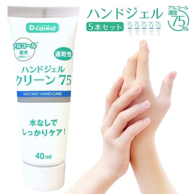 携帯 アルコール ハンドジェル 75% 携帯用 40mL 5本セット アルコール 手 ハンドジェル 指 エタノール 消毒 除菌 ウイルス 持ち運び べたつかない ウィルス対策 宅配のみ