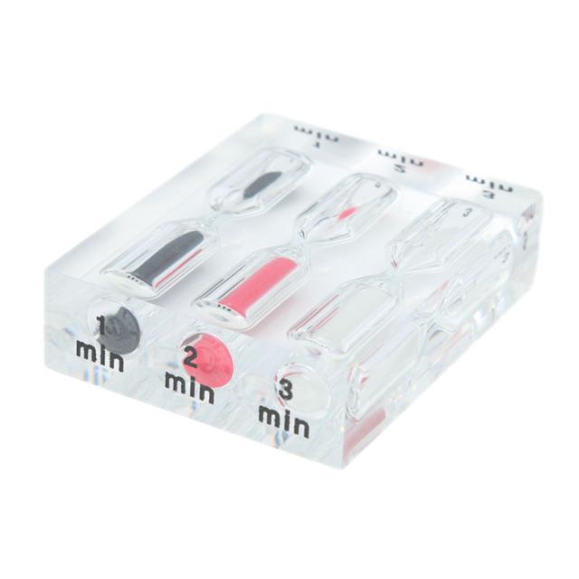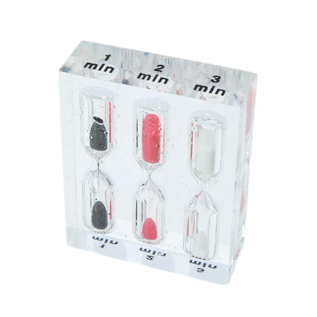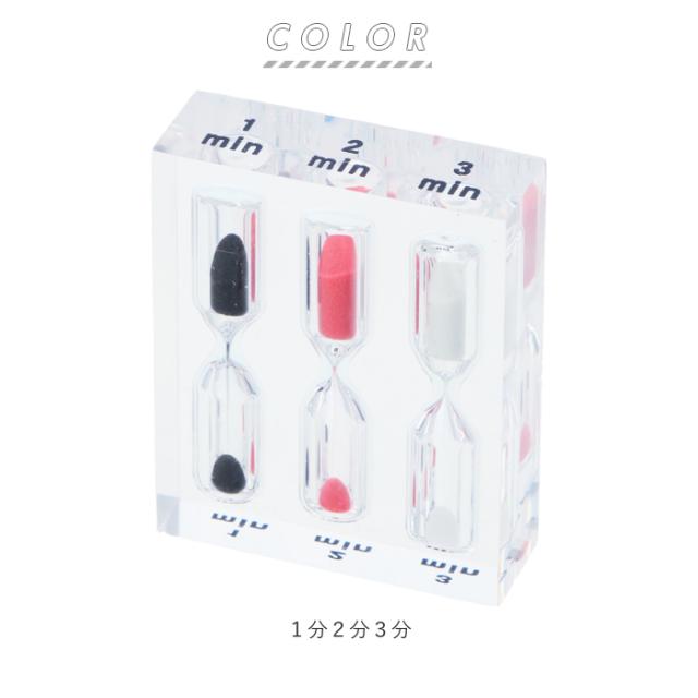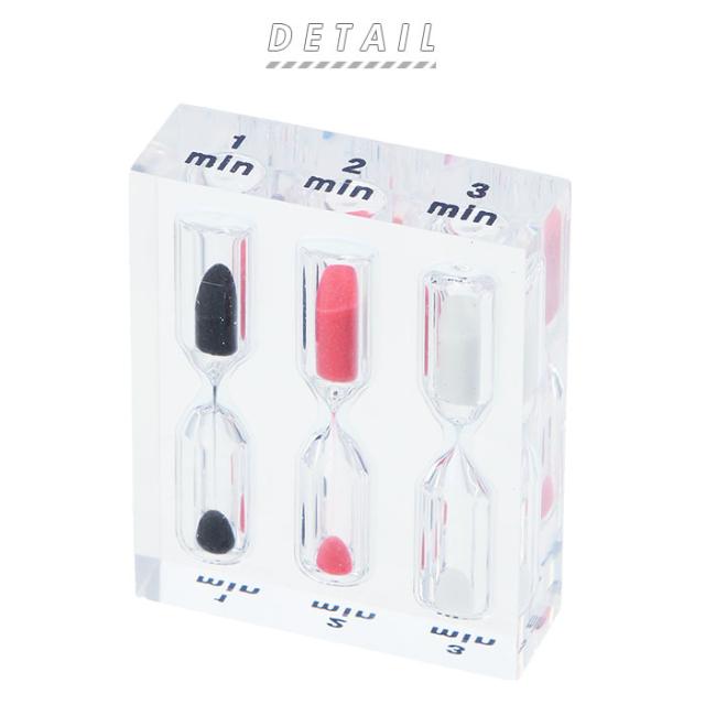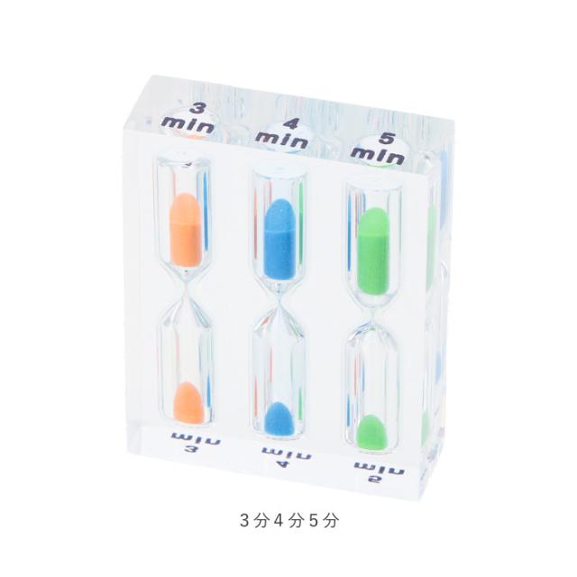 | 商品説明 | ・アクリルの透明感がとってもお洒落な砂時計。「1分・2分・3分」と「3分・4分・5分」の時間がそれぞれ計測できる2タイプが登場。 ・アクリル製のフレームに色鮮やかな砂を閉じ込めたスタイルは、その機能性はもちろん装飾性も◎ ・時間を見分けやすいように計測時間ごとに砂が色分けされていて、上下にタイムも記載。 ・スマホやキッチンタイマーなどのデジタル機器と違って、時間を測りたい時は上下にひっくり返すだけでOK。 ・設定が不要なのでいつでもサッと手軽に使えて便利。 ・砂が流れ落ちる様子は、眺めているだけでリラックス効果も♪ ・お料理はもちろん、防水性に優れているからトレーニングや入浴時のご使用にもぴったり。 ・デスク周りに置いても美しいので贈り物にも。 |