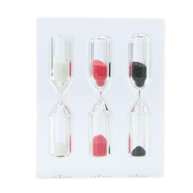 - 荷解きしてすぐキッチンに置いて毎日のように使っています。キッチンタイマーもいいけど、急かされる感じが時として鬱陶しくなるので、こうしたアナログなものも随時使うとホッとします。落ちていく砂を見ているだけで、時間の経過を楽しく眺められますね。うっかり落としてもそうそうは壊れなさそうなのもキッチンに向いています。ただキッチンのステンレス台に置いてあるせいか、3分計の白い砂が見にくいのが気になりました。