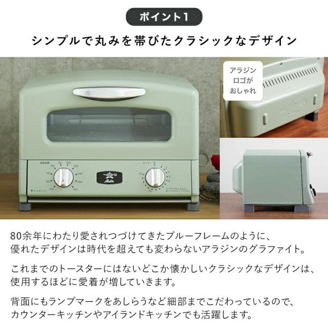 アラジン トースター 4枚 グラファイト グリル パン アラジントースター4枚焼き グラファイトトースター グラファイトグリル 食パン 北欧 おしゃれ AGT-G13B グリーン Aladdin グラファイト 母の日 プレゼント ギフト YY KS