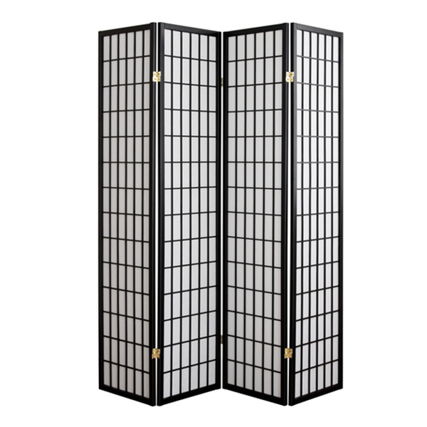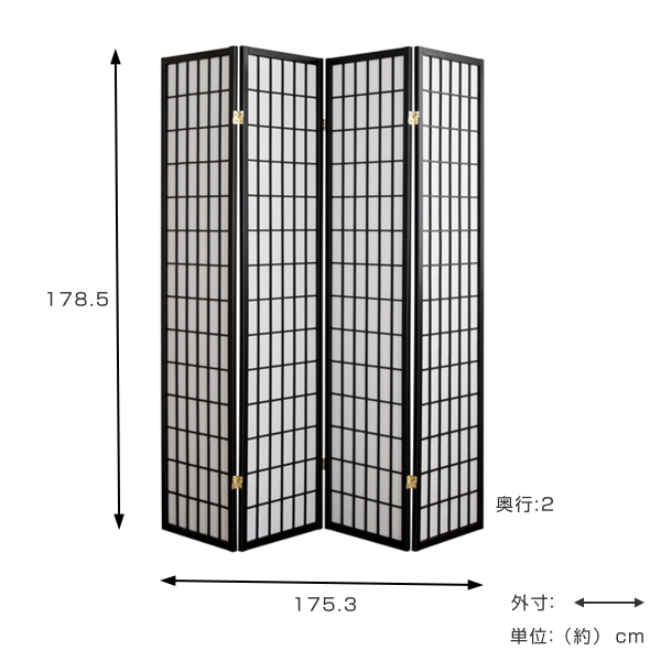 障子 4連 高さ178.5cm パーテーション スクリーン 衝立 間仕切り 収納 折りたたみ ( パーティション 目隠し ついたて 仕切り 和風 木製 折り畳み ブラック 和室 自立 格子 四連 桐 おしゃれ リビング キッチン 玄関 黒 )
