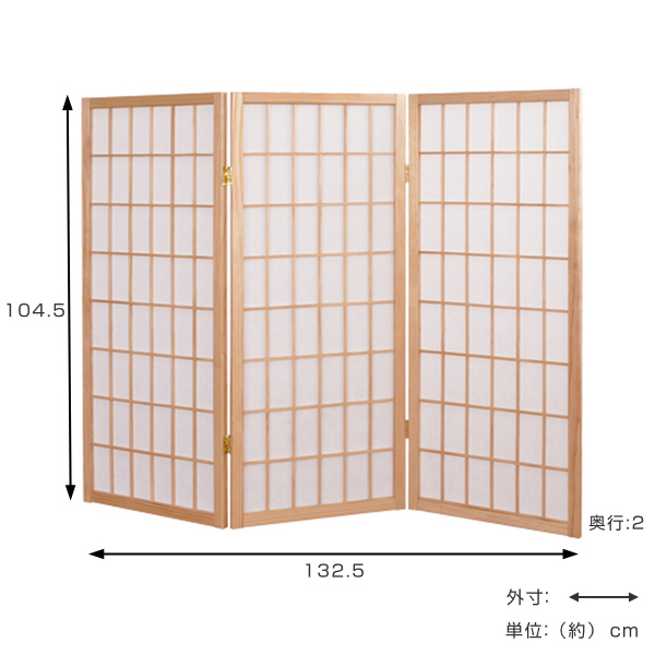 障子 3連 高さ104.5cm パーテーション スクリーン 衝立 間仕切り 収納 折りたたみ ( パーティション 目隠し ついたて 仕切り 和風 木製 折り畳み 天然木 和室 自立 格子 三連 おしゃれ リビング キッチン 玄関 )