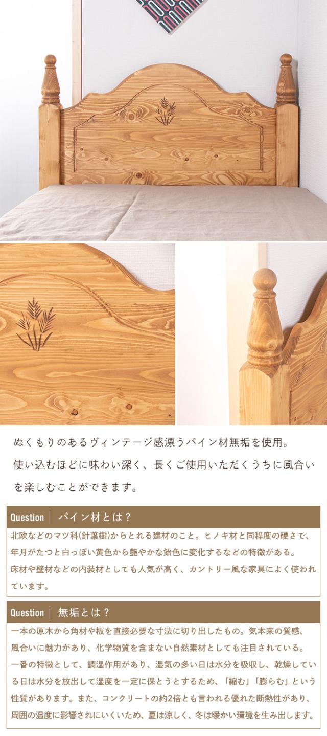ベッドフレーム 無垢 木製 シングル ベッド フレームのみ カントリー家具 パイン材 高級感 おしゃれ 北欧 一人暮らし 新生活