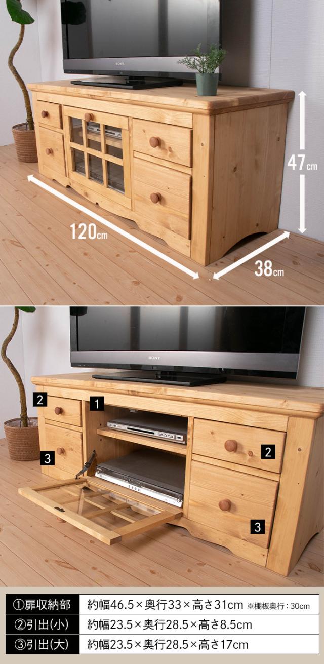 テレビボード 120 無垢 木製 TV台 テレビ台 TVボード 木製 引出収納 扉収納 収納 引出し 扉 収納 おしゃれ 北欧 一人暮らし 新生活