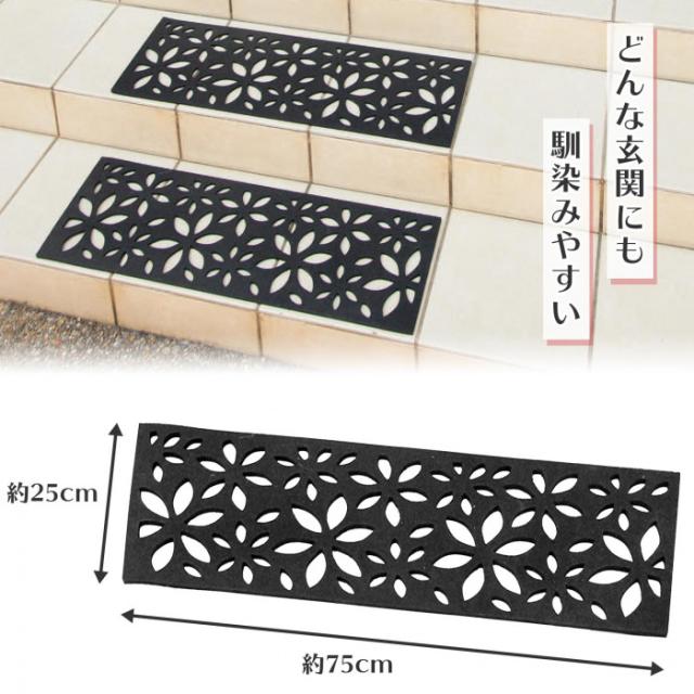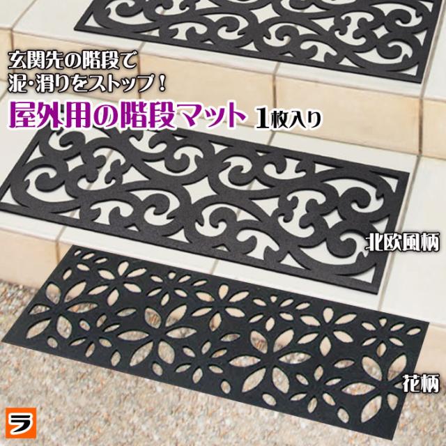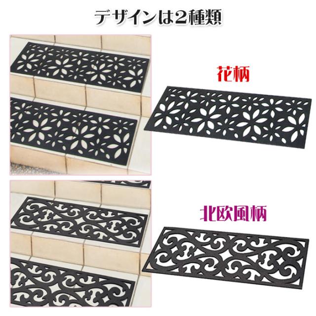 屋外用の階段マット ラバーマット 玄関 階段 マット 75×25 おしゃれ 北欧柄 花柄 ゴムマット 水洗い可