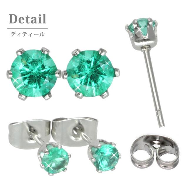 ステンレスピアス 5月誕生石 4mm エメラルドピアス 両耳用 ピアス サージカルステンレス 金属アレルギー 記念日 誕生日 プレゼント