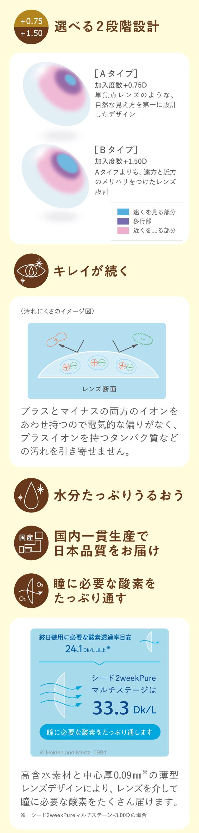2ウィークピュア マルチステージ 6枚入り 2箱 シード コンタクト コンタクトレンズ 遠近両用 遠近 2week 2ウィーク 2週間使い捨て 送料無料