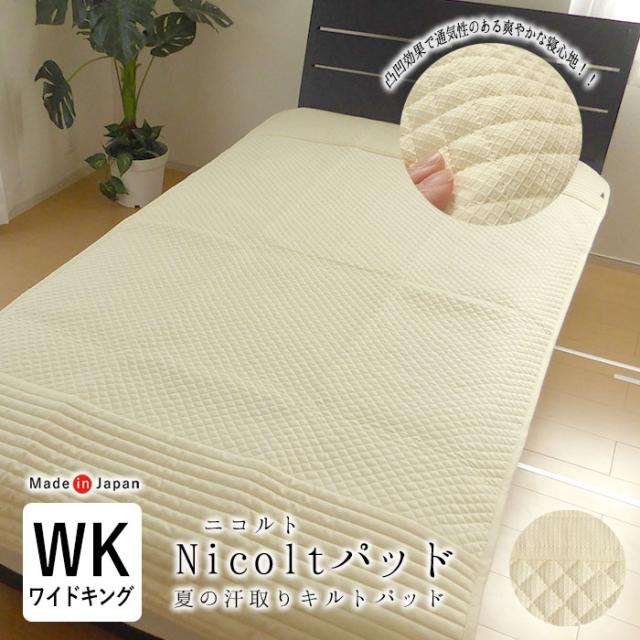 日本製 敷きパッド ワイドキング 200cm幅 200×205cm Nicolt パット 二コルトパッド 洗える 夏用 汗取りパット AF22814