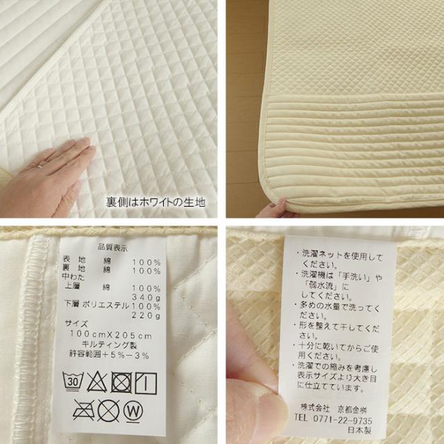 素材:表地/綿100%・裏地/綿100% 中綿(二層):上層/綿(脱脂わた)100% 下層/ポリエステル100% |